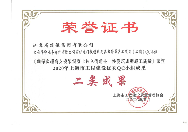 太仓博泽二期获得上海市QC二类成果奖