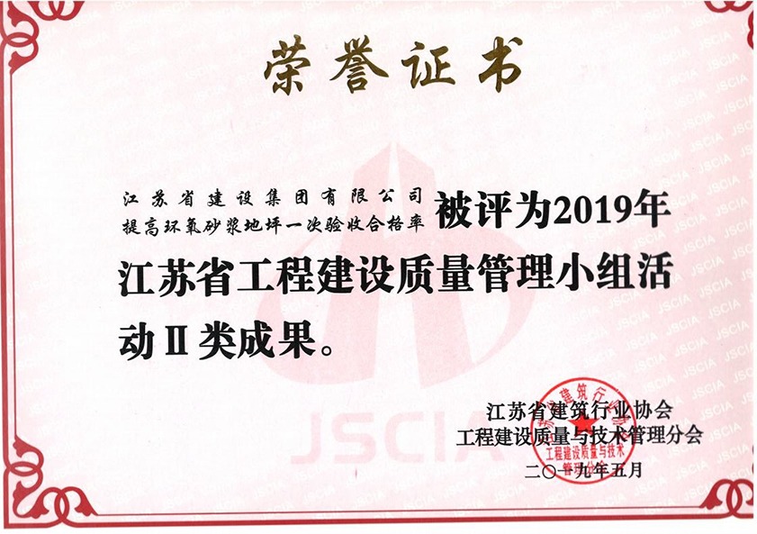 提高环氧砂浆地坪一次验收合格率获评2019江苏省工程建设质量II类成果奖