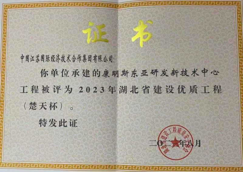康明斯东亚研发新技术中心工程获得湖北省建设优质工程(楚天杯)
